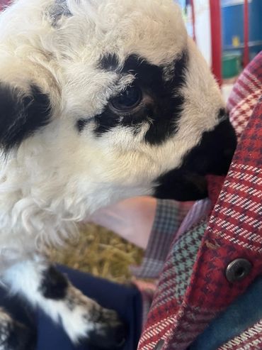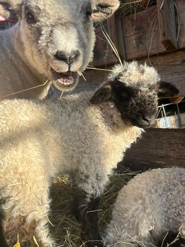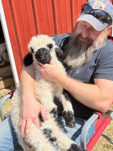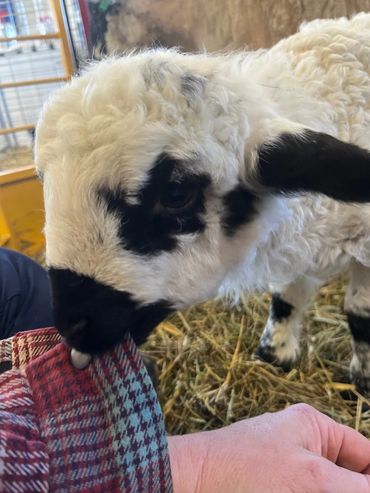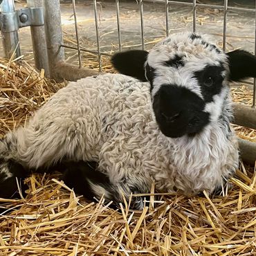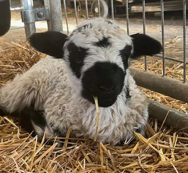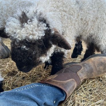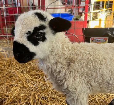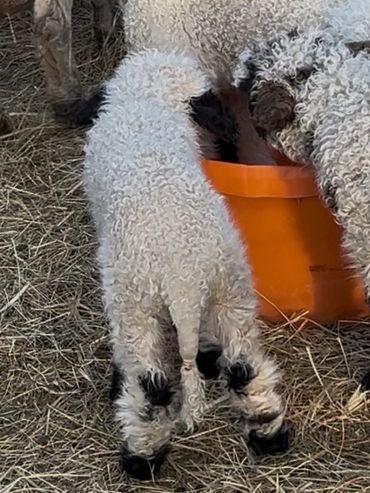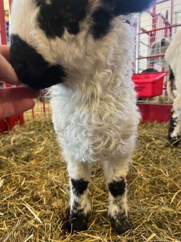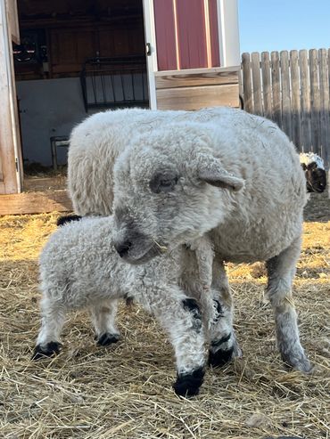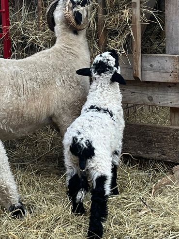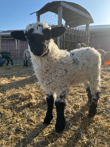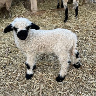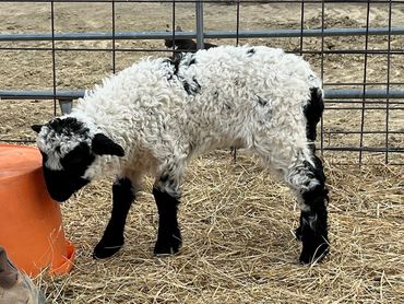 Mojave is an F2 (75% Valais) wether lamb out of Babydoll foundation. Mojave's dam is our F1 Benji and his sire is our full-blood ram Leuk. Mojave has incredible markings, very similar to a full-blood Valais. Mojave is sweet and friendly and a wonderful example of the Valais/Babydoll cross .