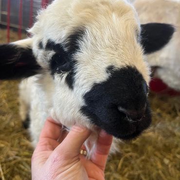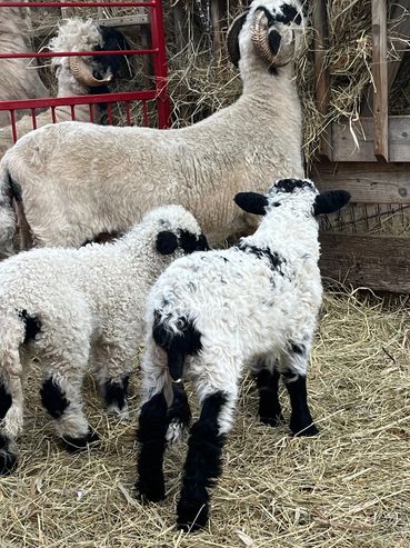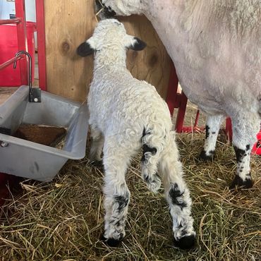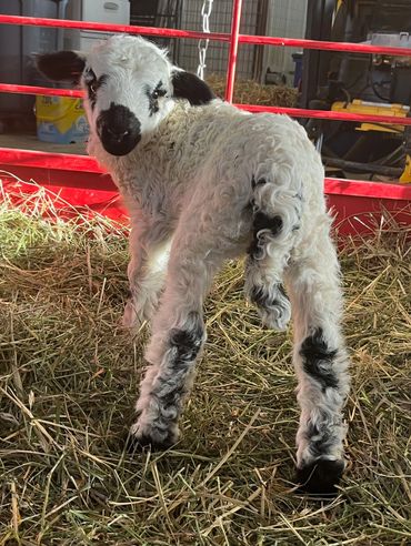 Miami is an F1 ewe lamb (50%) out of Scottish Blackface foundation. Miami's dam is Ethel and her sire is our full-blood Carpenter Creek's Leuk. Miami is one of our triplet ewe lambs. Miami has beautiful markings for an F1 with patches on all 4 legs. She also has the cutest half black/half white ears. Miami is registered with Valais Blacknose Sheep Society (VBSS) and Valais Blacknose Sheep Society of North America (VBSANA). Her DNA and lineage will be confirmed through UC Davis and provided to the buyer. Miami's price is $2500 and she will be ready to go to her new home in mid June. Contact us if you're interested in Miami!