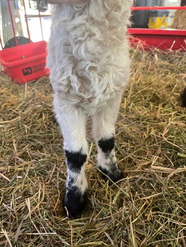 Moab is an F2 wether lamb (75% Valais) out of Scottish Blackface foundation. Moab's dam is our F1 Kaydence and his sire is our full-blood ram Leuk. Moab's wool is so unique, like cookies & cream. He has straight long legs and beautiful conformation. Moab would make a great pasture pet or ram buddy.