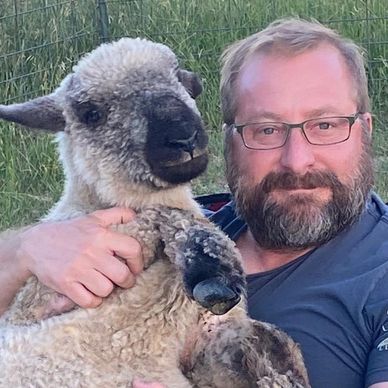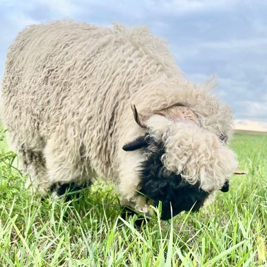 Iowa Kiwi is a full blood Valais Blacknose Ewe that was the first full-blood addition to Carpenter Creek Ranch. Kiwi is out of Heartland Bojangles and Parkdale Dot, two top tier Valais breeders in New Zealand. Kiwi came to the U.S. as an embryo and was raised by Iowa Valais prior to coming to our farm as a lamb. Kiwi's full blood sister, Iowa Koala, was awarded Maximum Points and Reserve Champion at the 2023 National Show. We're very proud to say that Kiwi graded (-1) Maximum Points by the Swiss Certified International Judges at the 2024 and 2025 National Show. The Judges included Gerallt Jones of Snowdonia, Raymond Irvine and Jenni McAllister of Highland, Jamie Wood of Prendwick, and Phil Garrod of Puddle Lane...all renowned breeders of Swiss genetics. Professional grading is very important for purchasers interested in breeding and showing the best. Kiwi is extremely well marked with large black knee patches and gorgeous curls. Kiwi is registered with both VBSANA and VBSS with DNA confirmed at UC Davis and Flock 54.