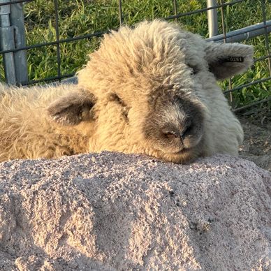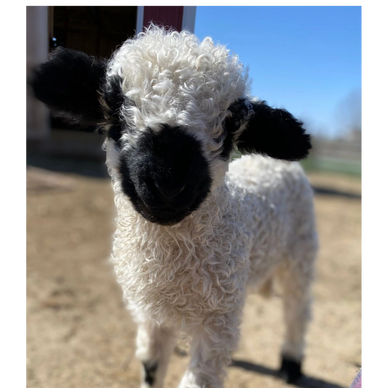 Carpenter Creek Larkspur is a 2024 F2 Valais Blacknose Ewe lamb out of our Kaydence crossed with Highland Danny, so she has a lot of maximum points in her ancestry. Larkspur will produce her first offspring in 2026. She is registered with both VBSANA and VBSS with DNA confirmed at UC Davis and Flock 54.