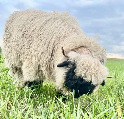 Iowa Kiwi is a 100% Valais Blacknose Ewe that was the first full-blood addition to Carpenter Creek Ranch. Kiwi is out of Heartland Bojangles and Parkdale Dot, two top tier Valais breeders in New Zealand. Kiwi came to the U.S. as an embryo and was raised by Iowa Valais prior to coming to our farm as a lamb. Kiwi's full blood sister, Iowa Koala, was awarded Maximum Points and Reserve Champion at the 2023 National Show. We're very proud to say that Kiwi graded (-1) Maximum Points by the Swiss Certified International Judges at the 2024 and 2025 National Show. The Judges included Gerallt Jones of Snowdonia, Raymond Irvine and Jenni McAllister of Highland, Jamie Wood of Prendwick, and Phil Garrod of Puddle Lane...all renowned breeders of Swiss genetics. Professional grading is very important for purchasers interested in breeding and showing the best. Kiwi is extremely well marked with large black knee patches and gorgeous curls. Kiwi is registered with both VBSANA and VBSS with DNA confirmed at UC Davis and Flock 54.