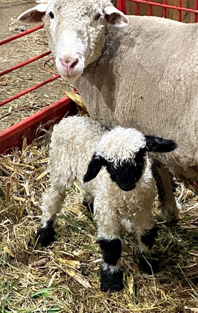 Leuk is a full-blood ram lamb named after a village in the canton of Valais in Switzerland. Leuk's sire is Black Oak Braxton and his dam is Iowa Kiwi. Leuk was a massive lamb who weighed in at 17 lbs at birth! At 8 months of age, he weighed 160 lbs and is still growing. Leuk has wide-set straight, thick legs and very thick curly wool. Leuk was brought to the National Show in 2024 and graded. Leuk's only fault was a small patch of black wool under his tail which is only visible with close inspection (144). At 5 months of age Leuk was placed with 5 breed-up ewes and successfully settled them all. Leuk is also the sire of the 2025 Supreme Champion Breed-Up Ewe, CAR Mesa! Mesa, an F2 ewe lamb, won the Supreme Champion title while competing with F1's/F2's/F3's and F4's. Check our her photos to see what Leuk can produce in your breed-up program. Leuk also sired a similarly marked F2 wether, Mojave, and his photos can be viewed on the "for sale" page (SOLD). Leuk is registered with both VBSANA and VBSS and DNA verified though UCDavis and Flock54. He is also available for live cover at our farm.